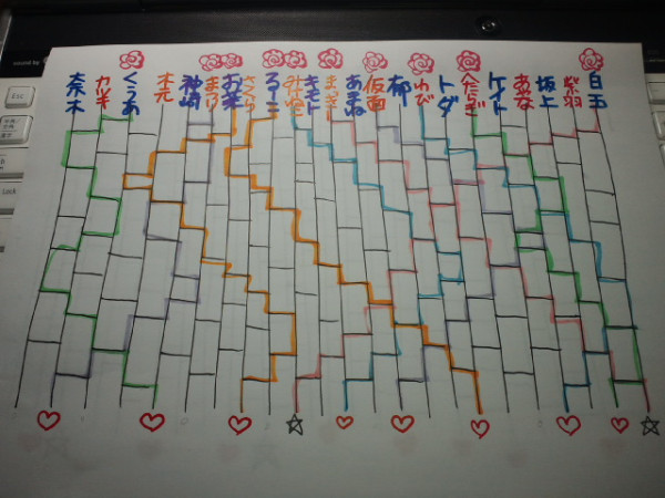 召喚の陣(※あみだ図)をつくるのに三回ばかり失敗し、