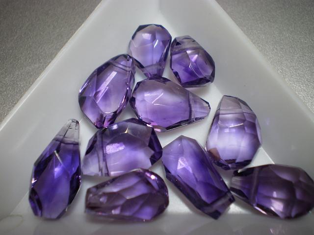 まだむが企画に応募して来てくれた時、ふっとこの石が目に入りましてね。なんか……その瞬間、「ああ、彼女にはコレしかない」と何の根拠もなく確信したのです。とても喜んでもらえたので、その確信は正しかったと言うか、このアメジストが私に、まだむの胸元を飾らせろと電波的なものを飛ばしてきたのかもしれません。そんなお品です。