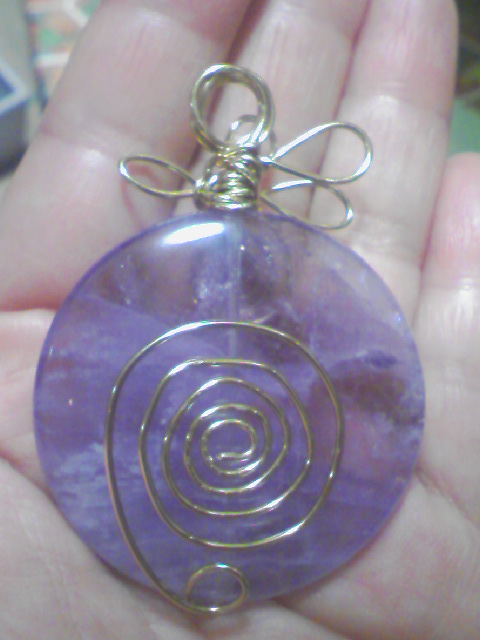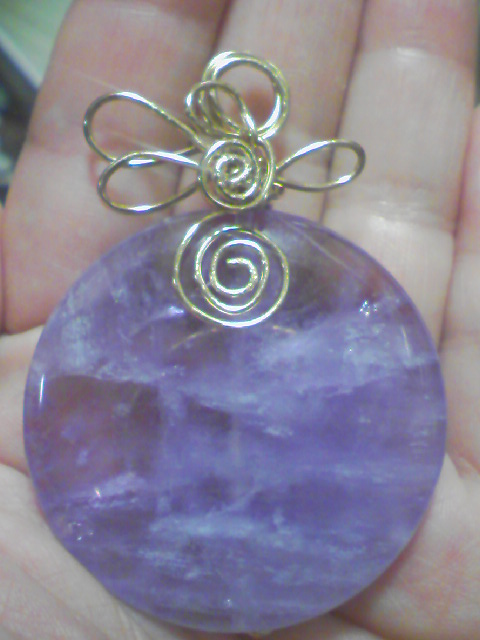 アメジストの特大コインとゴールドのワイヤー#20を使用。