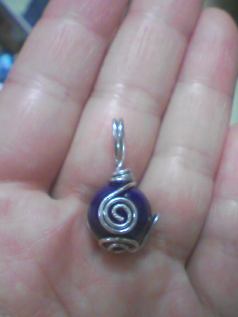 最近この、12ミリ以上のラウンドをワイヤーで巻くというやり方に凝っていて、今日の飲み会には、自分用にシンプルなヒスイのペンダントトップを創ってつけていきました。シンプルなものなので、Tシャツにも合うんじゃないかなーと思います。