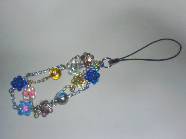 っつか問題はやはり、イメージを優先させてパーツをつないだら恐ろしく長いストラップになってしまったことです。おまけにそれほど頑丈ではないので、あまり実用的ではない気がひしひしと。飾って愛でてもらうだけのストラップって……(ガクリ)。
