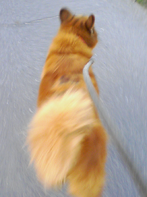 夕方の散歩、その日は妙に遠出をしたがり、いつもなら絶対に通らないような道を通って、久しぶりに工場(こうば、祖父が昔仕事場に使っていた粗末な建物のある場所で、家から結構遠い)まで行ったんだそうです。それで結局ばてて、呼吸がおかしくなり、心臓に負担がかかって命を縮めたんですが、奴の最後に歩いたルートが、今まで通った散歩道の総集編? とでもいうべきもので、自分の時間の残りに漠然と気づいていて、最後に見に行こうと思ったのかなあ、と母と話しました。
