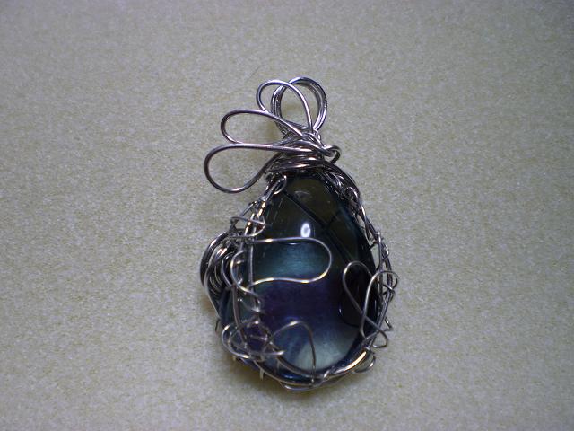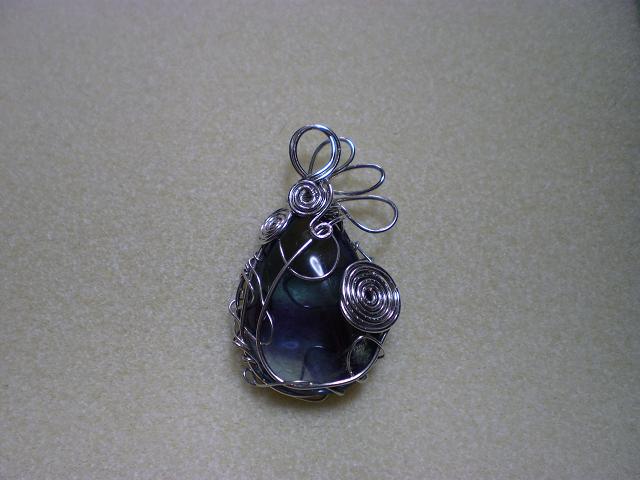 やふおくでゲットしたフローライトのペンダントトップをワイヤーで編み込んで創りました。ルースのサイズが大きかったので、相当ゴツいペンダントトップになってしまいましたが、私的にはお気に入りです。