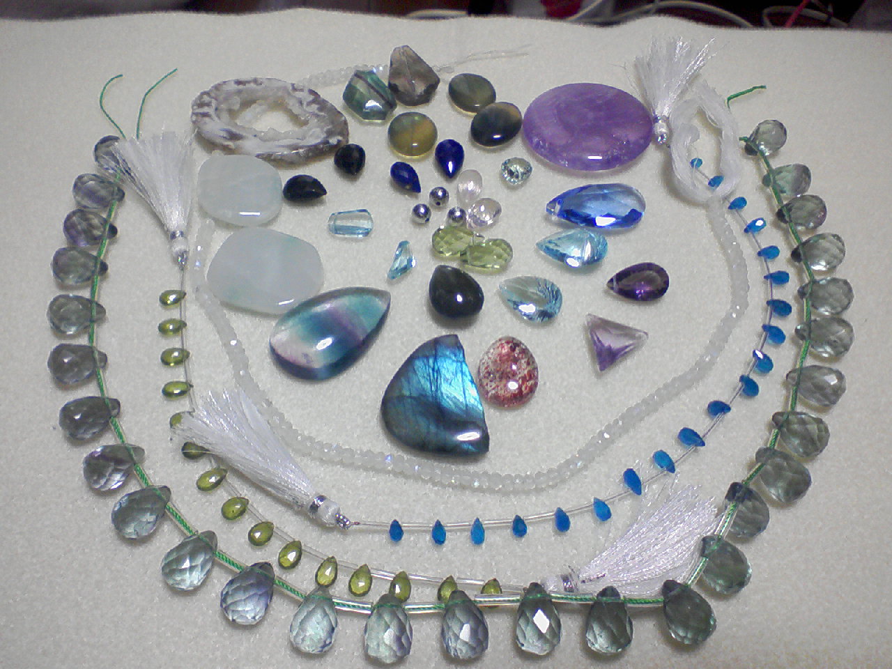 アイドクレースとかネオンブルーアパタイトとかメテオライトとかレピドクロサイトインクォーツとかレア石も若干。ブルートパーズとかラブラドライトとかグリーンアンバーとか高価な石も若干。