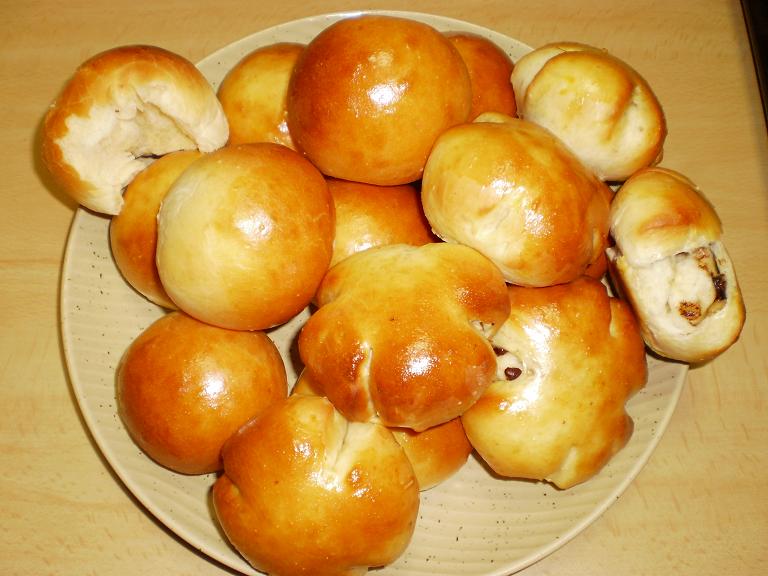 ということで、お皿にてんこ盛りの焼きたてパン。