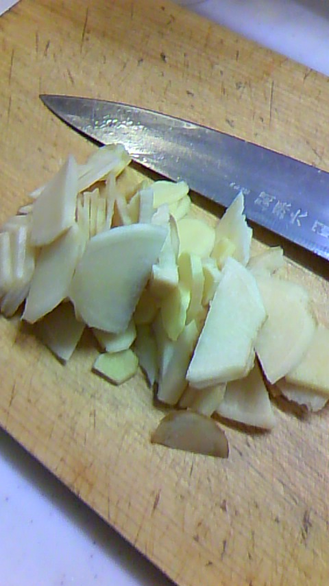 削ぎ切りが面倒なら普通にスライスしてもOK。厚さは7ミリ~1cmくらい。