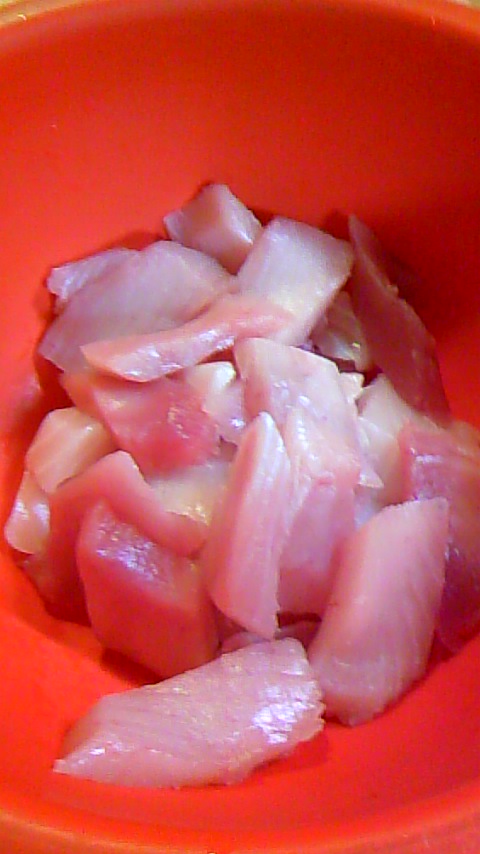 1.まぐろは1.5~2センチ角にざくざくっと切る。適当でOK。