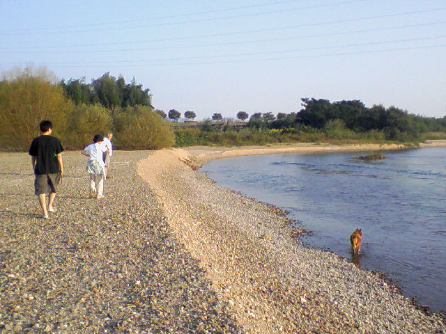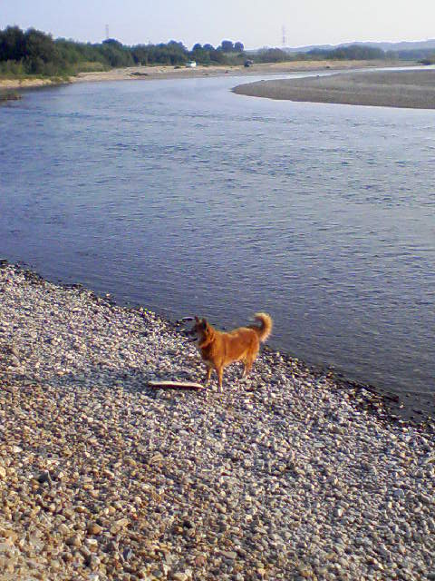 写真は、弟と犬と河原に行ったときのもの(何故か両親までついて来た)。