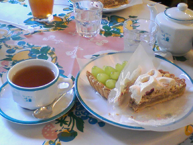 *お茶+タルト2切れでお昼ごはん。
