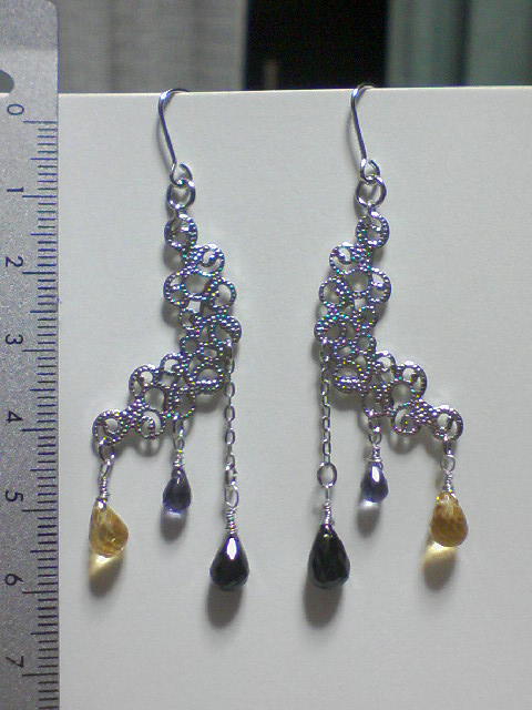 下のピアスの色合いは、ポルノグラフィティの『アゲハ蝶』から来ています。喜びとしてのイエローと、愁いを帯びたブルー、世の果てに似ている漆黒。なかなかいい感じの組み合わせになったんじゃないかなぁと。