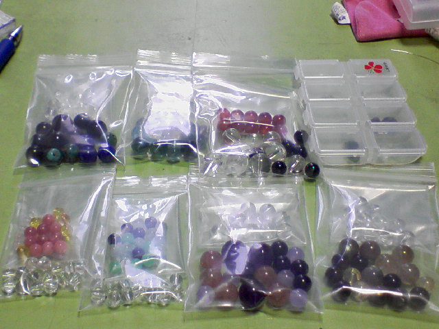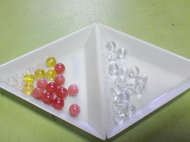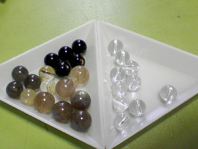 因みに、大サイズの方にはクリスタルのラウンド8ミリが10個、小サイズの方にはクリスタルのラウンド6ミリが15個必ずついてきます。