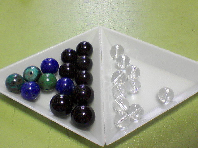 ブラックオブシディアン(12ミリ&10ミリ)、ラピスラズリAA+(10ミリ)、クリソコラAA(10ミリ)