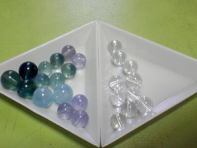 ブルーグリーンフローライト(10ミリ)、アクアマリンAA+(10ミリ)、ブルー&グリーンフローライト(各8ミリ)