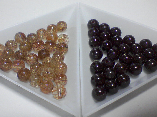 鮮やかなルチルが入った、レッド~ブラウンルチルクオーツと、色合いが深すぎて判り辛いですが、スターガーネットのラウンド。いい色です。
