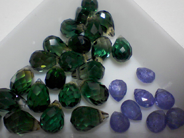 左はクリスタルを染色したグリーンクオーツ、右はタンザナイト。多少のインクルージョンやカケはありますが、タンザナイト、素敵です。