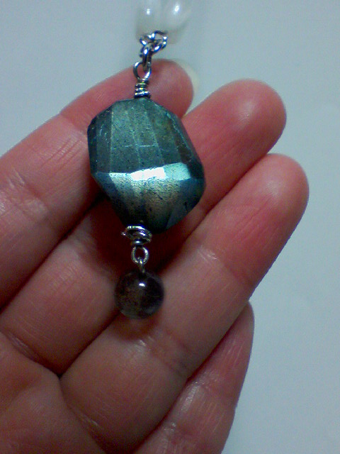 春っぽい色合いのピアス&イヤリングと、眼鏡巻きにおける新デザインのネックレスを作りました。買ったはいいけどデカすぎてどうしようと思っていたラブラドライトをどーんと使用。