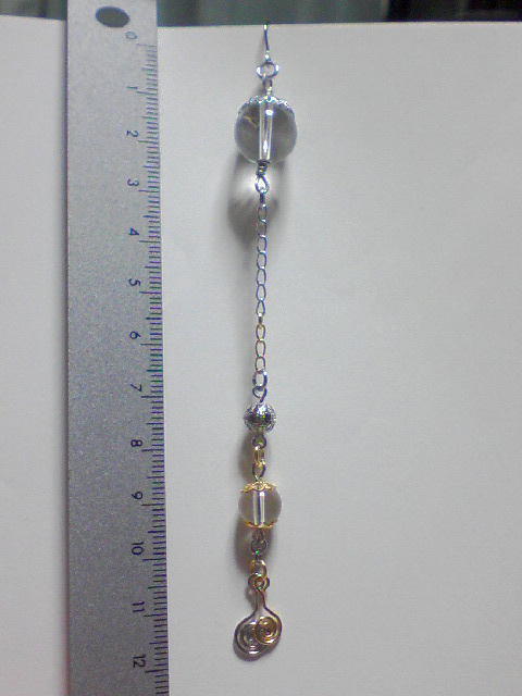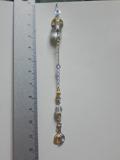 そして今日は工房に趣味丸出しというかピンポイントで友人をターゲットにしたアクセサリを作成。片耳のみのピアスで、チェーンをたっぷり使ったロングなデザインで、金銀+水晶のみというシンプル配置。手間はかかりましたけど、楽しかったです。