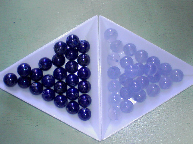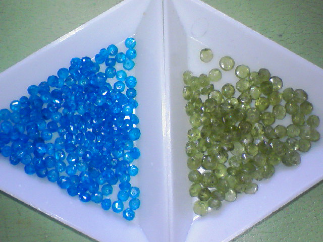 左がネオンブルーアパタイト、右がアイドクレース。ボタンカットという、小さなビーズです。
