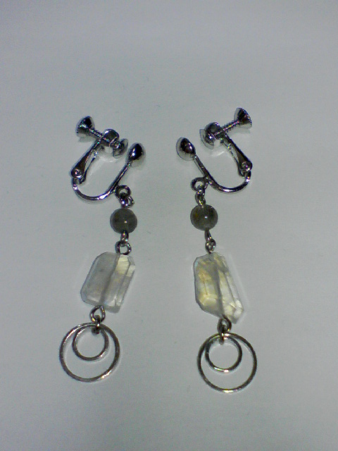 こちらは“魂の双子”くみさわさんのために作ったイヤリング。シラーが綺麗に見えないのが残念ですが、高品質のラブラドライトと、レインボームーンストーンの見目のいいのを使っています。