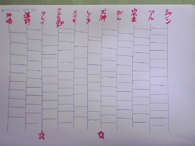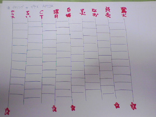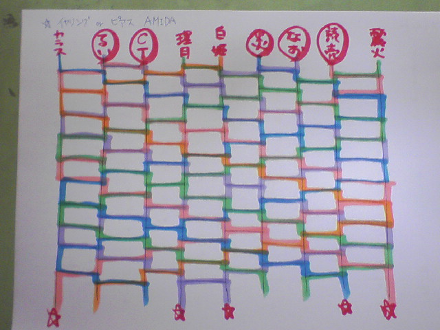 そんなわけで、応募要項を各自印刷したあと、最終兵器AMIDAKUJIの製作に取りかかりました。