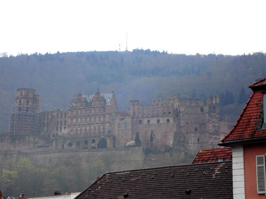 運転手さんの絶妙のテクで、恐ろしく細い山道を上がるとそこはもうハイデルベルク城です。