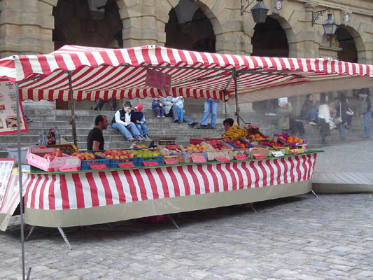 ←色んなところで見られる果物屋さんで夜のお供にリンゴとナシを買い込み、町の名物菓子シュネーバル(英語で言うとスノーボール)を買って食し、すっごい有名なクリスマスグッズ・ショップであわや迷子になりかけ、小さなベッカライでつたないドイツ語を駆使して保存の利きそうなパンを買い込みました。